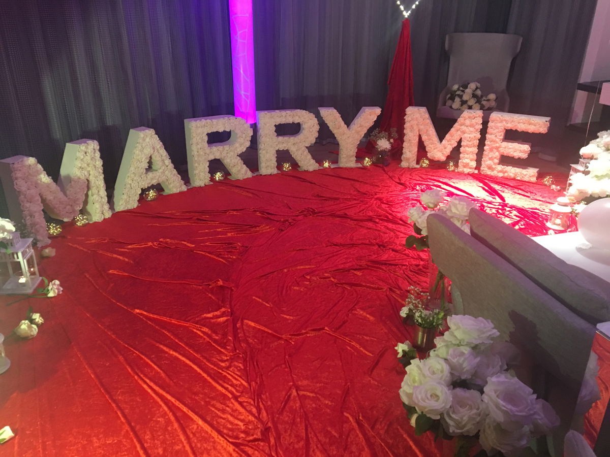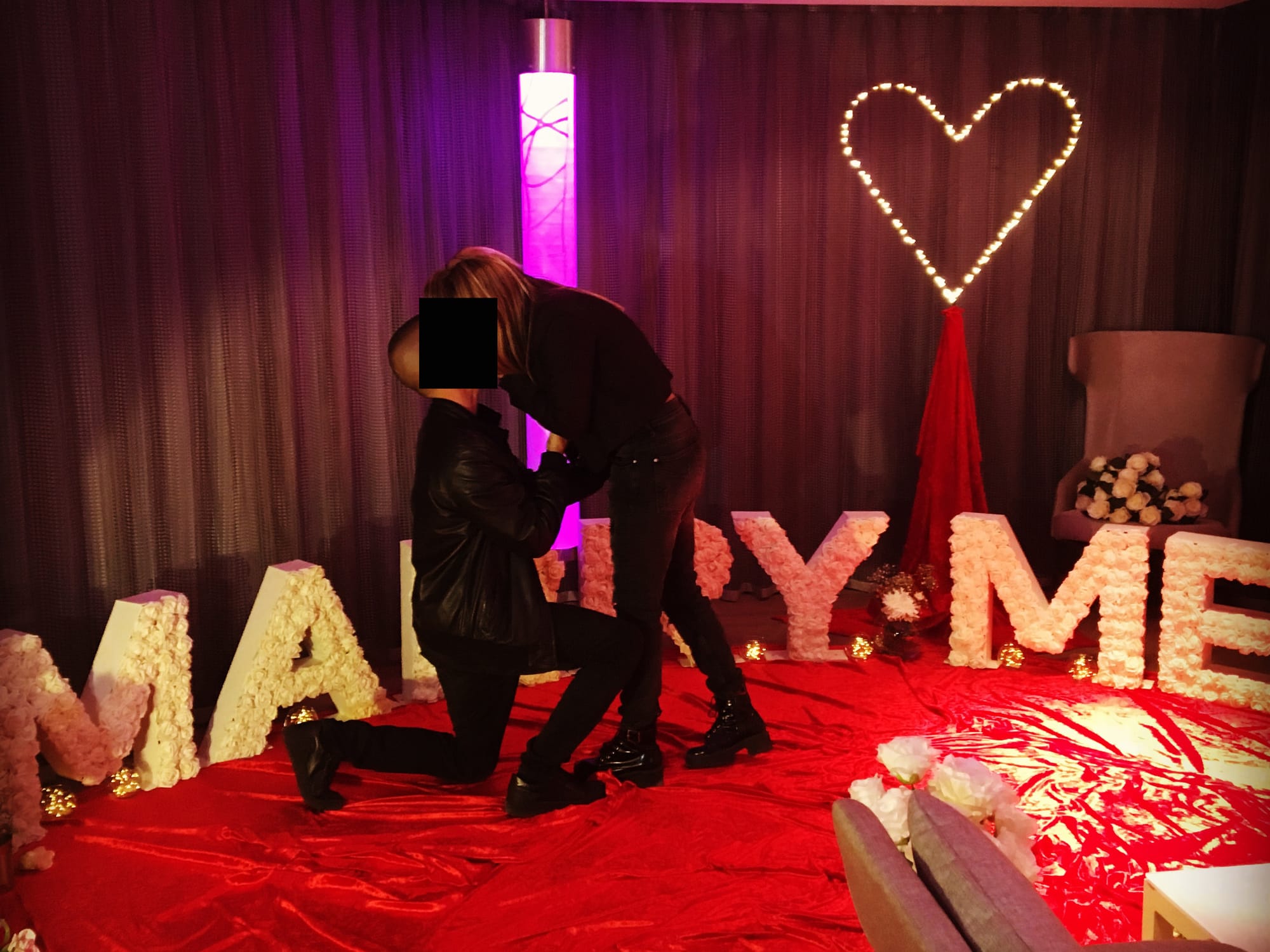 MARRY ME בפרחים עיצוב להצעת נישואין בחדר במלון או בצימר